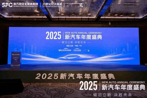 11月20日,由南方财经全媒体集团指导、21世纪经济报道主办,以“破旧立新 决战未来”为主题的“2025新汽车年度盛典”在广州隆重举办。