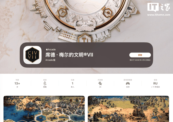 IT之家 2 月 5 日消息,苹果宣布策略游戏《席德 · 梅尔的文明 VII(文明 7,Sid Meier's Civilization VII)》将于今天正式上线 Apple Arcade 订阅服务,支持 Mac(Apple 芯片)、iPhone、iPad 平台,但不支持 Vision Pro。