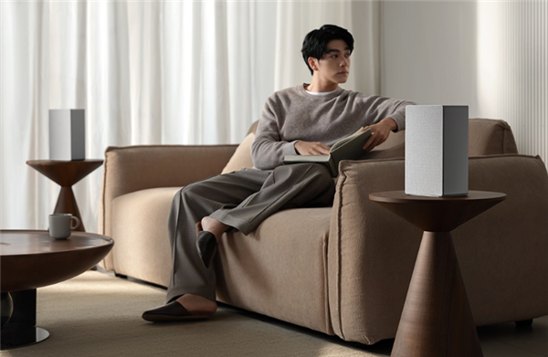 重量仅2.1kg,尺寸142.5×107.5×263.1mm,相比于Max更适合普通用户,可以更好的融入客厅、卧室等场景,而且同样支持磁吸装饰面板更换,可选金属或织布材质面板,还可选配的预穿线金属落地支架。