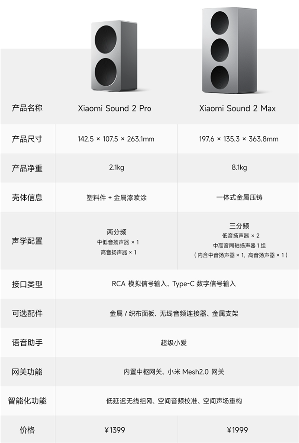 小米Sound 2 Pro音箱发布:包豪斯外观支持中枢网关、超级小爱