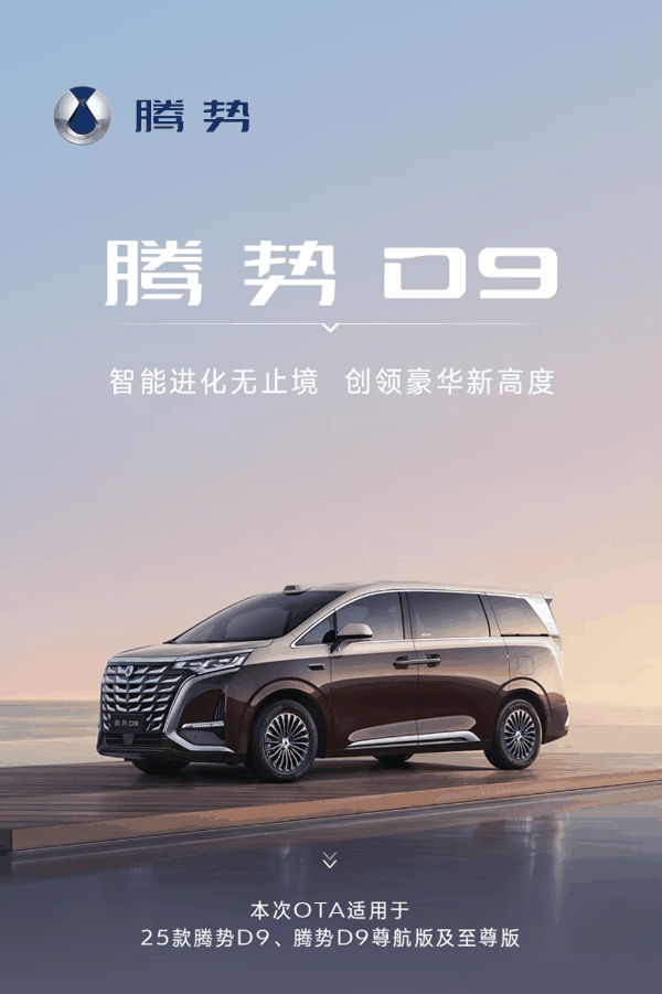 新增驾驶辅助前车近距离变道闪灯提醒功能(25 款腾势 D9 尊航版四驱、至尊版)