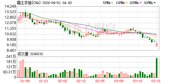 截至3月31日美股收盘,霸王茶姬(NASDAQ:CHA)股价报9.33美元,跌2.91%,今年以来股价跌近两成。