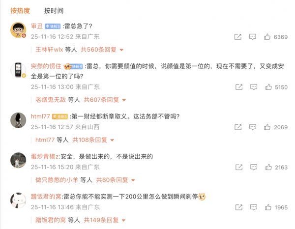 雷军:汽车“好看排第一位”与“重视安全”不冲突