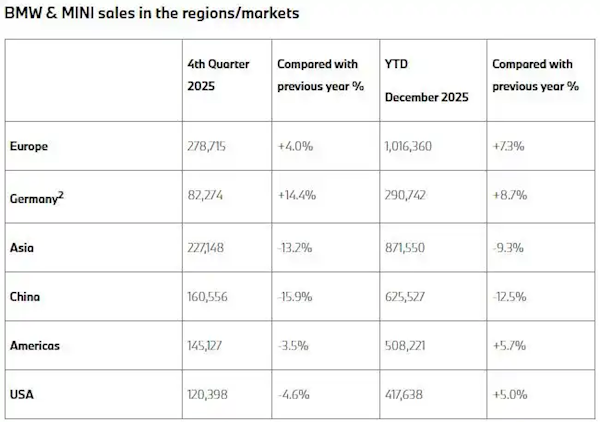 快科技1月11日消息,宝马集团近日公布了集团销量。数据显示,宝马2025年全年销量为2,463,715辆,同比微增0.5%。