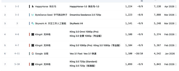 近日,一款名为HappyHorse-1.0的匿名模型(未标注厂商)开始在视频榜单登顶多项测评。据权威AI评测平台Artificial Analysis AI Video Arena排行榜,HappyHorse-1.0以更高的Elo分数压过字节跳动旗下Seedance 2.0、快手旗下可灵AI、Google Veo 3 Fast等视频模型,一举成为榜首。Elo评分系统(Elo Rating System)是一种用于计算竞技对弈中相对技能水平的数学方法,属于AI模型中的“段位分”。