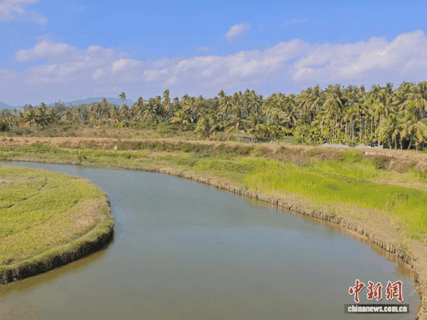 2月3日,陵水黎族自治县英州河湿地保护修复项目现场,一派水清草绿的自然景观。张月和 摄