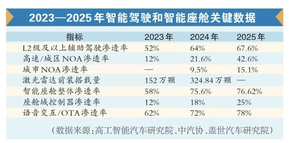 这些头部企业共同带动,使智能驾驶的普及速度超出了多数机构的早期预测。据高工智能 汽车 研究院统计,2025年前三季度,20万元以下价位车型合计标配NOA交付量达172.42万辆,贡献了整体NOA市场增量的近70%。同年,中国市场 乘用车 前装标配激光雷达搭载量达到324.84万颗,同比增长112.07%,渗透率突破20%。
