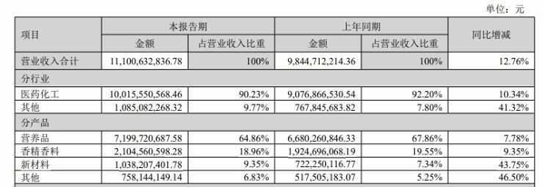 上文提到,若增长源于主营业务,而非一次性收益,后续才可能持续获得市场认可。那么,新和成的主营业务收入如何?