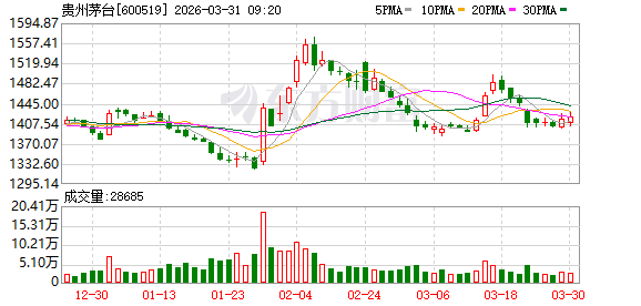 第三方酒价数据平台显示,2026年3月30日,2026年出厂53%vol 500ml的原箱飞天茅台市场价约为1655元/瓶,散瓶茅台则为1545元/瓶左右,散瓶飞天茅台市场价格与官方最新公告的自营体系零售价1539元/瓶已相差无几。
