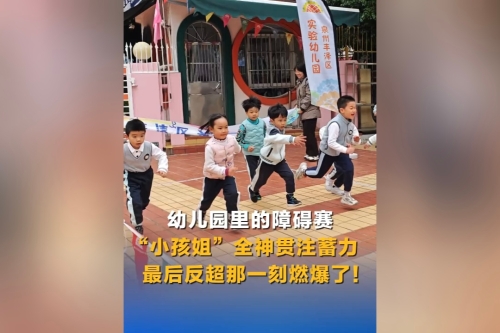 幼儿园里的障碍赛“小孩姐”最后反超