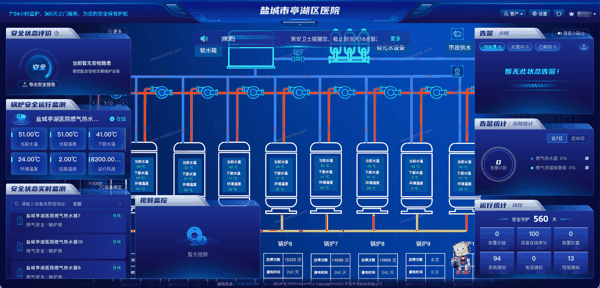 作为集医疗、教学科研、预防保健、康复于一体的二级甲等综合医院,盐城市亭湖区人民医院肩负着辐射盐城及周边区域的医疗服务重任。医院新院区配备的十台燃气真空热水锅炉,是保障诊疗秩序、病患生活的关键 “生命线”。医院人员密集、疏散难度高,对锅炉安全、用气安全、稳定运行提出极致严苛的要求,为全面筑牢安全底线,医院携手新智聚安,共同探索智能化管理解决方案。