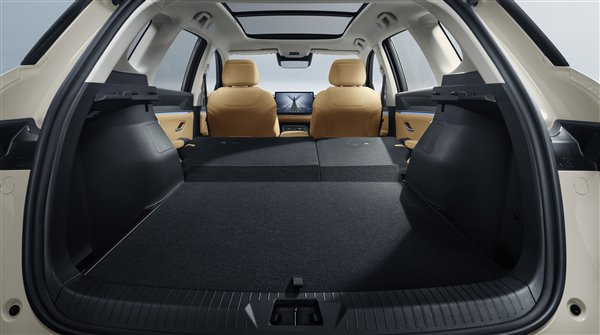 车辆长宽高为4735*1860*1690mm,轴距2712mm,使用大五座布局,后排座椅椅背支持4:6按比例放倒,全部放倒与后备厢齐平,秒变大床房。