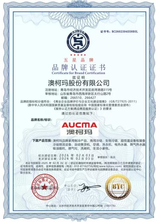 近日,经行业认证机构依据国家对服务、品牌相关评价标准的严格审核, 澳柯玛再次斩获“五星级品牌”“五星级售后服务”双五星认证。