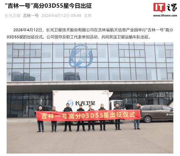 IT之家 4 月 12 日消息,据长光卫星官方消息, “吉林一号”高分 03D55 星今日出征 ,长光卫星技术股份有限公司还在吉林省航天信息产业园举行了该星的出征仪式。