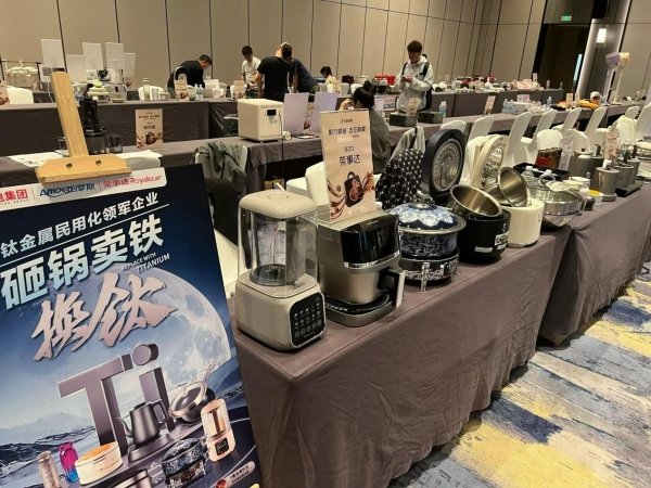 本次大会,荣电集团携旗下全系钛产品重磅亮相,凭借独特的材质优势与前沿的工业设计,瞬间吸引了全场目光。从兼具美学与健康属性的钛杯,到物理不粘的钛锅,再到革新性的0涂层钛内胆电饭煲,每一款产品都彰显了荣电集团在新材料应用上的深厚功底。通过现场直观的演示与专业讲解,工作人员生动诠释了“钛产品”的硬核实力,引得众多头部MCN机构与带货达人驻足洽谈,现场意向合作签约络绎不绝。