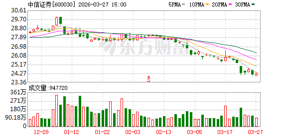 据 大智慧 VIP,截至3月27日收盘,中信证券A股收报24.13元,跌2.15%;港股收报23.78港元,跌3.65%。
