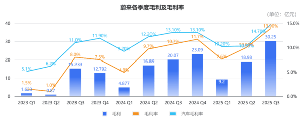 接下来,通往盈利的第二个关键,就是 毛利 了。从蔚来三季度的毛利率上,确实已经看到了公司盈利能力的提高。
