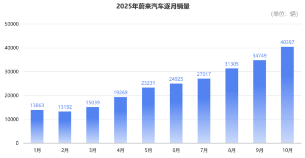 结合蔚来10月交付的 40397辆 计算,今年最后的两个月,蔚来平均每月需交付 4~4.2万台 ,相较于上一季度规划的 月均5万台 有所下调。
