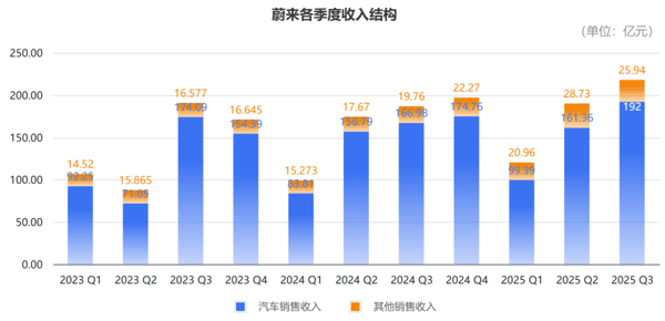 蔚来第三季度 总营业收入 为217.9亿元,同比增长16.7%,环比增长14.7%。