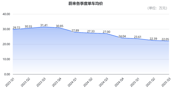 算下来,蔚来Q3 单车均价 约 22.02万元 ,同比下滑18.3%,环比下滑了1.5%。