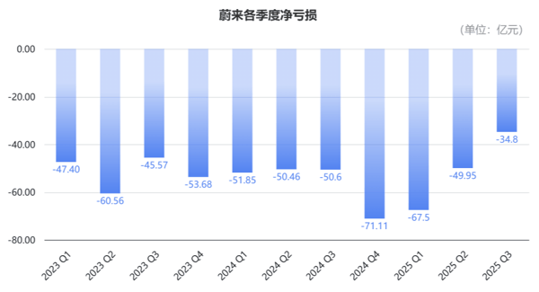 是的, 蔚来仍在亏损,Q3净亏损34.8亿元,但已大幅收窄超30% 。
