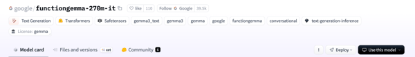 另一个是 FunctionGemma, 专为函数调用优化的 270M ( 2.7 亿参数 ) 模型,可在手机、浏览器及其他设备上运行。