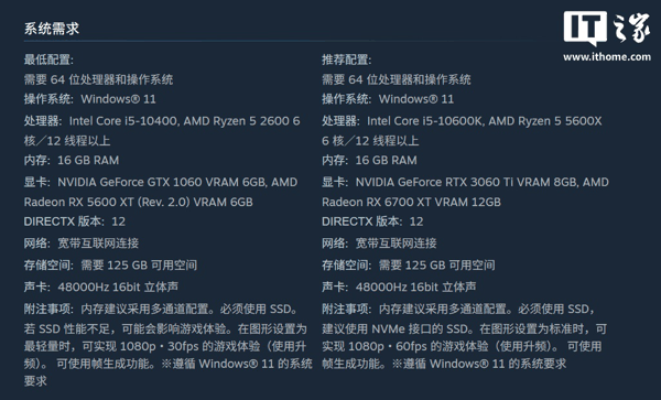 IT之家附该游戏配置要求如下: