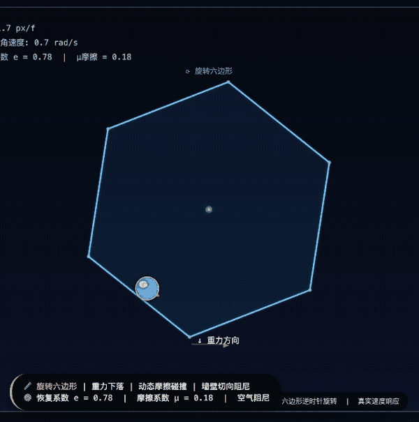比如让两个模式各自写一个 p5.js 程序,模拟球在旋转六边形内弹跳,要求受重力和摩擦力影响。结果很直观——专家模式给出的物理行为更符合直觉,落点更准,弹跳轨迹更真实。