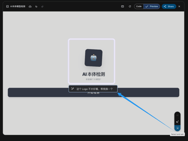 ▲ 在 Canvas 右下角有 Select and ask,以及 Add Gemini features,Select and ask 能实现指哪改哪,