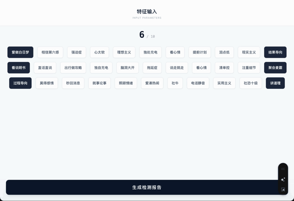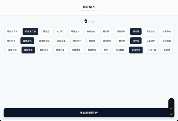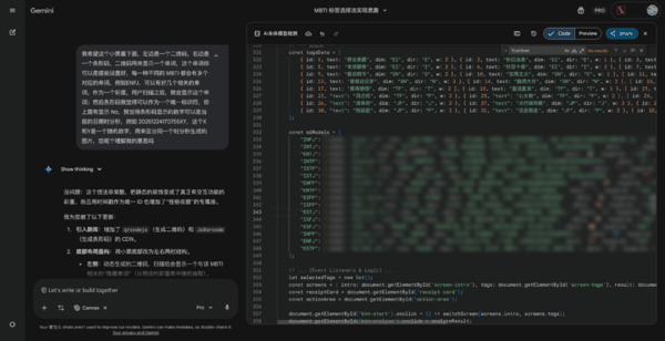一开始输入的提示词是,「如果我要测试一个人的 MBTI,就是选一些标签,用户选择不同的标签后,能生成他对应的 MBTI,你觉得能做到吗」?