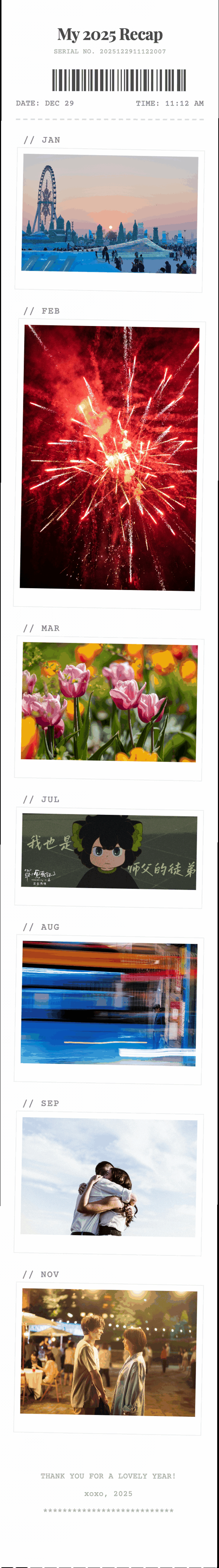 给每个月上传一张图片,如果没有,也可以不用上传,然后它就会慢慢吐出一张我们的年度照片小票。
