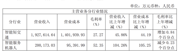 分产品来看,智能短交通包括电动平衡车和电动滑板车、电动两轮车、全地形车、其它短交通产品及配件。电动平衡车和电动滑板车收入为43.29亿元,同比增长28.05%,占总收入的20.34%;电动两轮车收入为118.59亿元,同比增长64.45%,是贡献最多的产品,占总收入的55.72%;全地形车收入为11.38亿元,同比增长16.63%,占总收入的5.35%;其他短交通产品及配件收入为19.50亿元,同比增长18.32%,占总收入的9.16%。