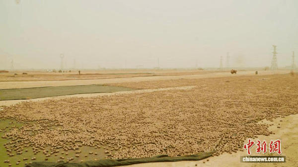 秋季核桃采收后,农民们忙着晾晒。(资料图)韩丽 摄