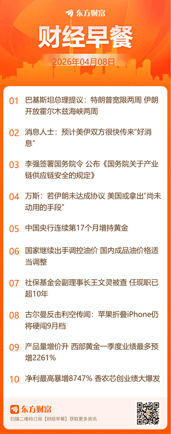 东方财富财经早餐4月8日周三