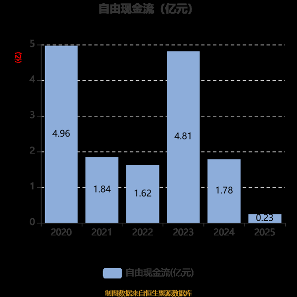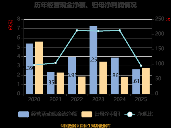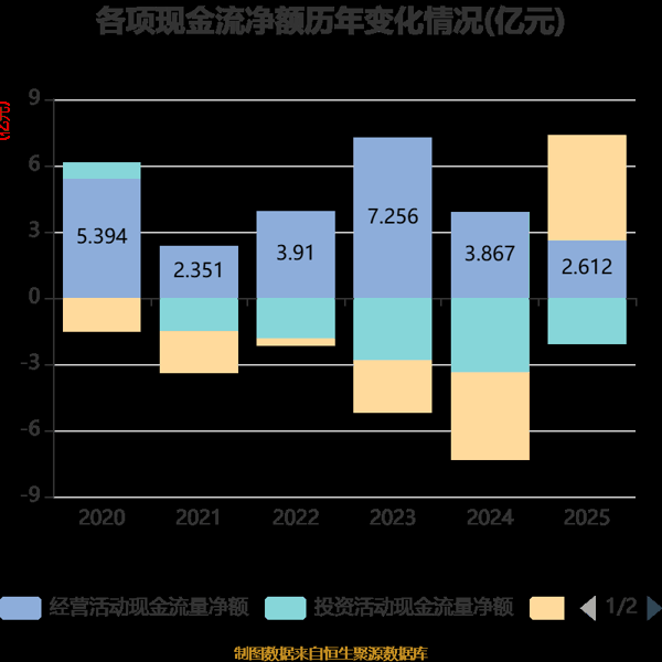 截至2025年,公司经营活动现金流净额为2.61亿元,同比下降32.45%;筹资活动现金流净额4.77亿元,同比增加8.71亿元;投资活动现金流净额-2.07亿元,上年同期为-3.37亿元。