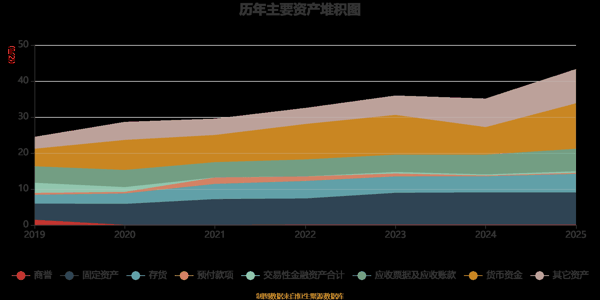 资产重大变化方面,截至2025年末,公司货币资金较上年末增加65.26%,占公司总资产比重上升7.4个百分点;固定资产较上年末减少0.22%,占公司总资产比重下降4.9个百分点;其他非流动金融资产较上年末减少51.63%,占公司总资产比重下降2.27个百分点;其他应收款(含利息和股利)较上年末增加146.42%,占公司总资产比重上升1.57个百分点。