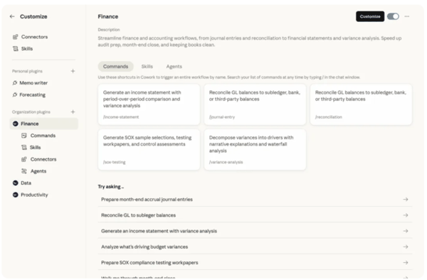 金融领域的插件直接瞄准专业服务行业的核心工作流。