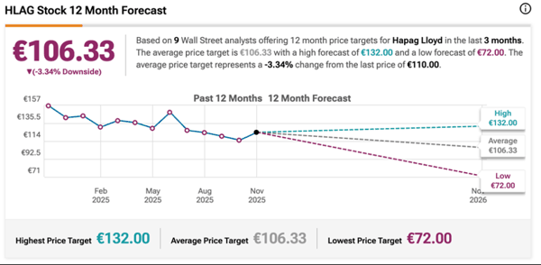 多位华尔街分析师在财报发布后对赫伯罗特的股价进行预期下调,目前平均 12月目标价约为106.33欧元,预测降幅3.34%。