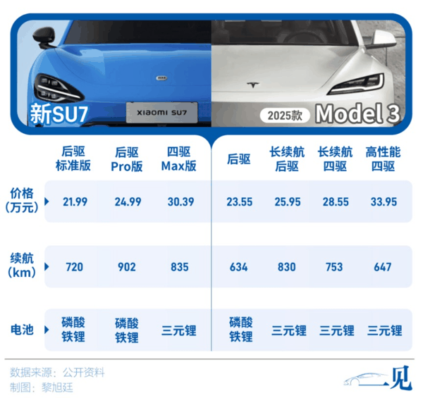 上述人士称,按照上述方案,Model 3后轮驱动版比小米SU7标准版最高便宜约1.5万元,Model 3长续航后轮驱动版比SU7 Pro最高便宜约2.5万元。