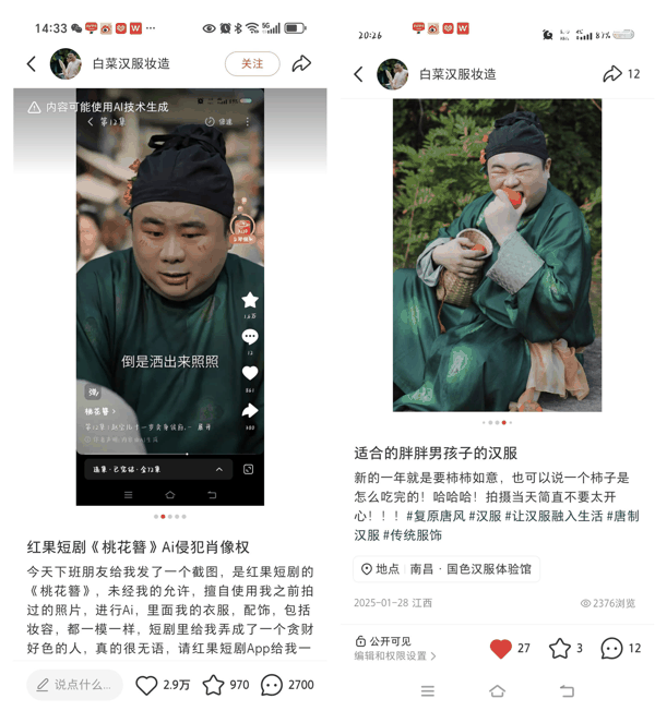 博主此前发布的汉服写真博文与维权博文