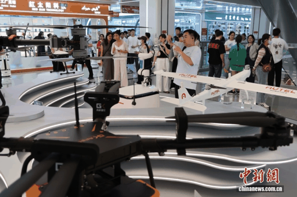资料图:义乌全球数贸中心内的无人机产品吸引顾客。 中新社 发 毛建军 摄