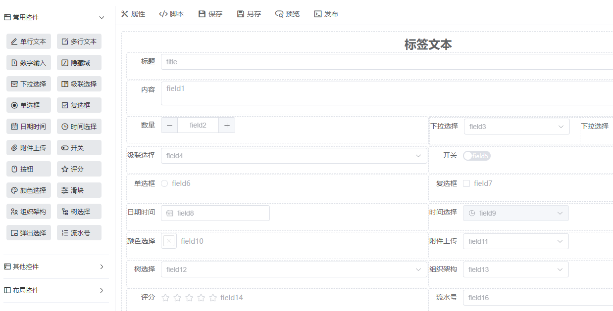 表单设计采用目前流行的拖拽设计,可以自适应PC和移动端。不再使用以前的HTML编辑器扩展。表单设计基于vuedraggable自研,不是集成第三方开源组件。