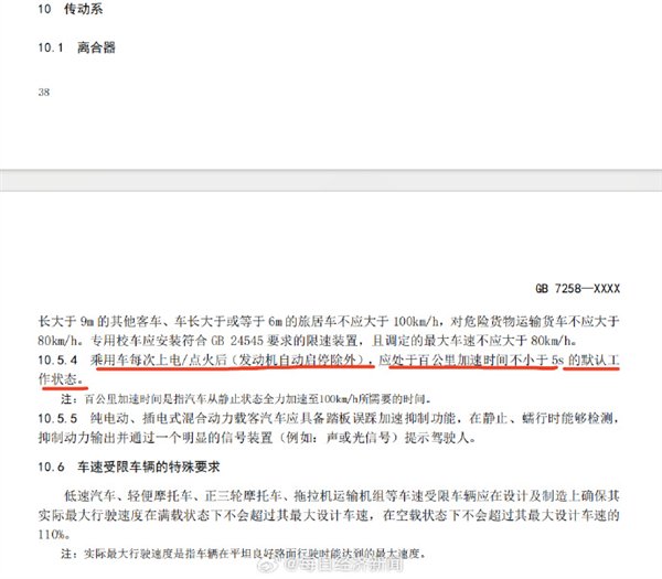 快科技11月13日消息,近日,根据国家标准化管理委员会标准制修订计划, 公安部组织完成了《机动车运行安全技术条件》国家标准的征求意见稿。其中提及限速要求:乘用车每次启动后,应处于百公里加速时间(0~100km/h)不少于5秒的默认状态。