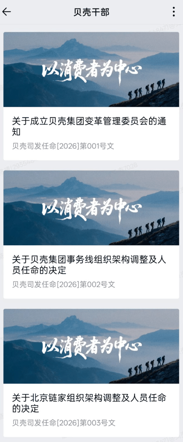 每经记者了解到,这次贝壳连续下发了8条通知文件,官宣本次组织架构调整。