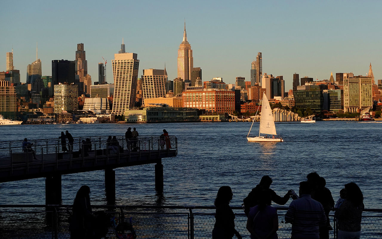 人们在美国新泽西州霍博肯远眺纽约曼哈顿。视觉中国|图