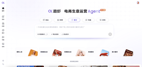 “遨虾”是1688在11月底所正式推出的一款跨境电商AI智能体,定位于为跨境创业者打通从选品到供应链对接的数字化链路。简单来说,跨境从业者仅需发起对话,或者上传产品图片、输入商品链接,遨虾便能够在选品、找厂、询盘、内容素材生成优化等环节给予相应的解决方案。除了下单和付款环节外,其他环节均可由遨虾自动完成。