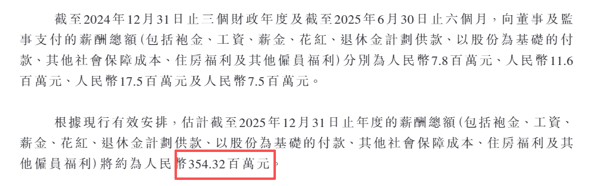 2022至2024年,公司向 董事及监事支付的薪酬总额 分别为 780万元、1160万元及1750万元 ,呈逐年快速增长趋势。公司预计 2025年的薪酬总额将高达惊人的3.54亿元 ,较2024年激增19倍。