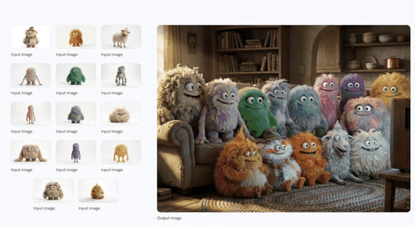 例如,在谷歌给出的示意图里,使用 14 张玩偶图像生成一张图,在精细的提示词下画面融合得非常自然。