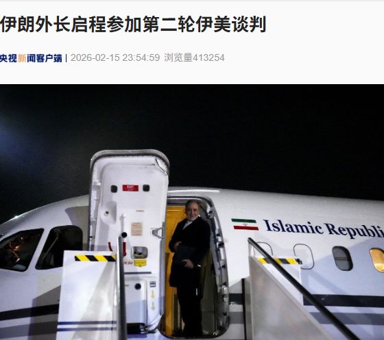据央视新闻,总台记者获悉,当地时间2月15日晚,伊朗外长阿拉格齐率领伊朗谈判代表团启程前往瑞士日内瓦,参加第二轮伊美谈判和其他外交活动。