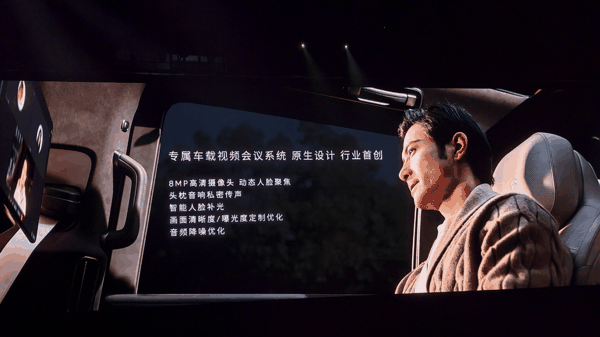 蔚来 ES9 还搭载行业首创的专属车载视频会议系统,搭载 8MP 高清摄像头,支持动态人脸聚焦;头枕音响支持私密传声;同时支持智能人脸补光、画面清晰度 / 曝光度定制优化、音频降噪优化。该车还提供第三排对讲功能。